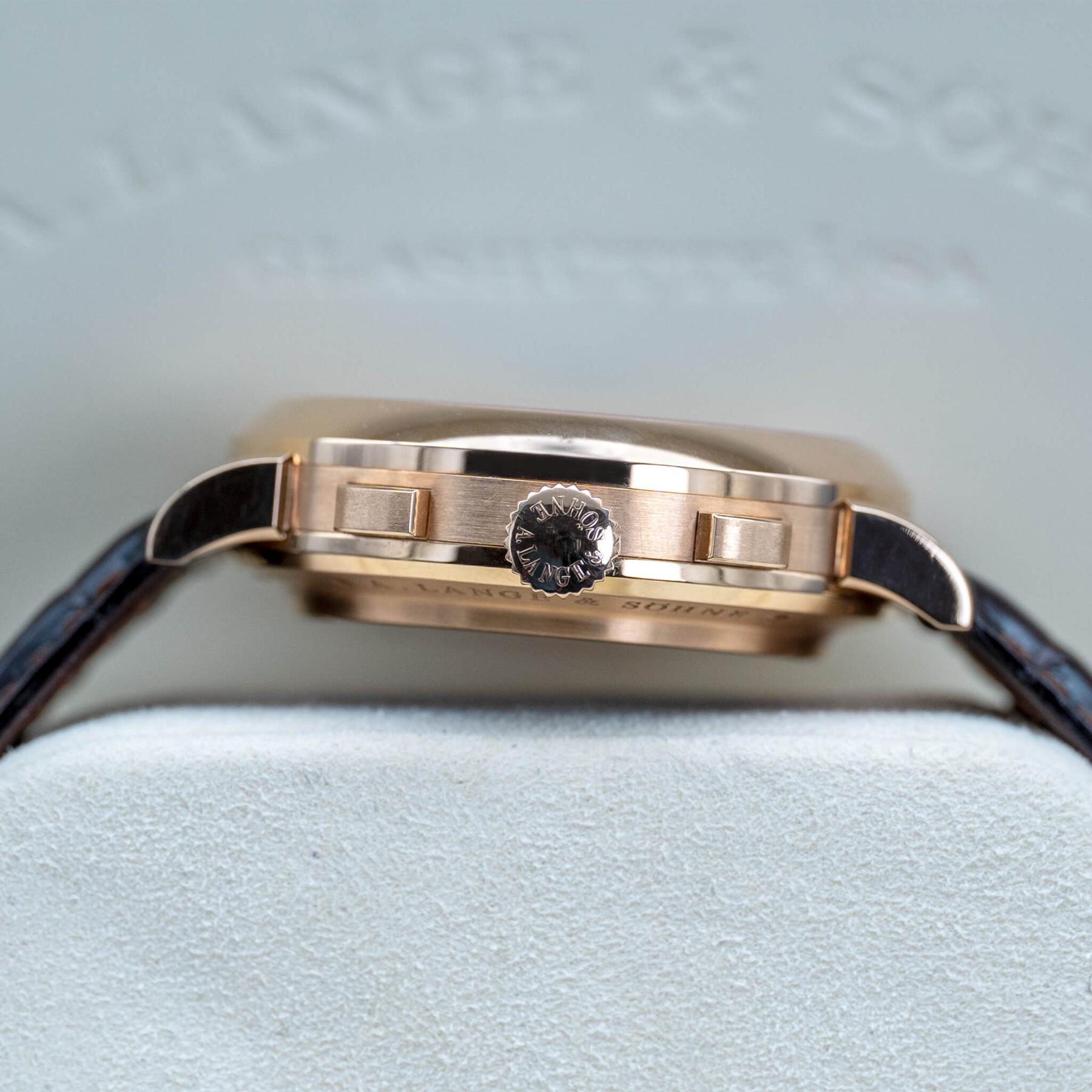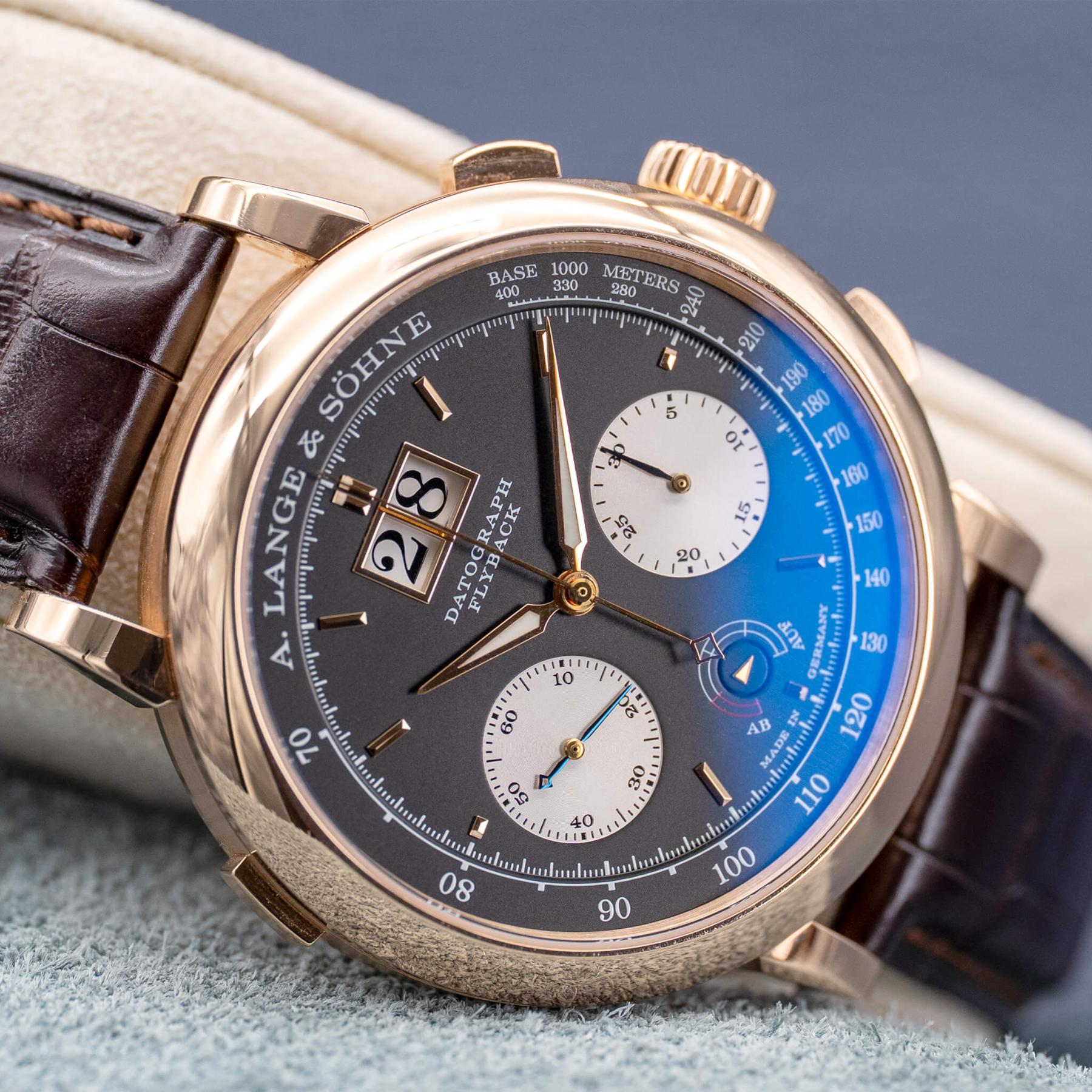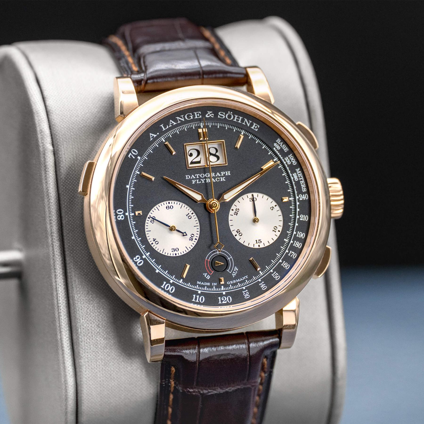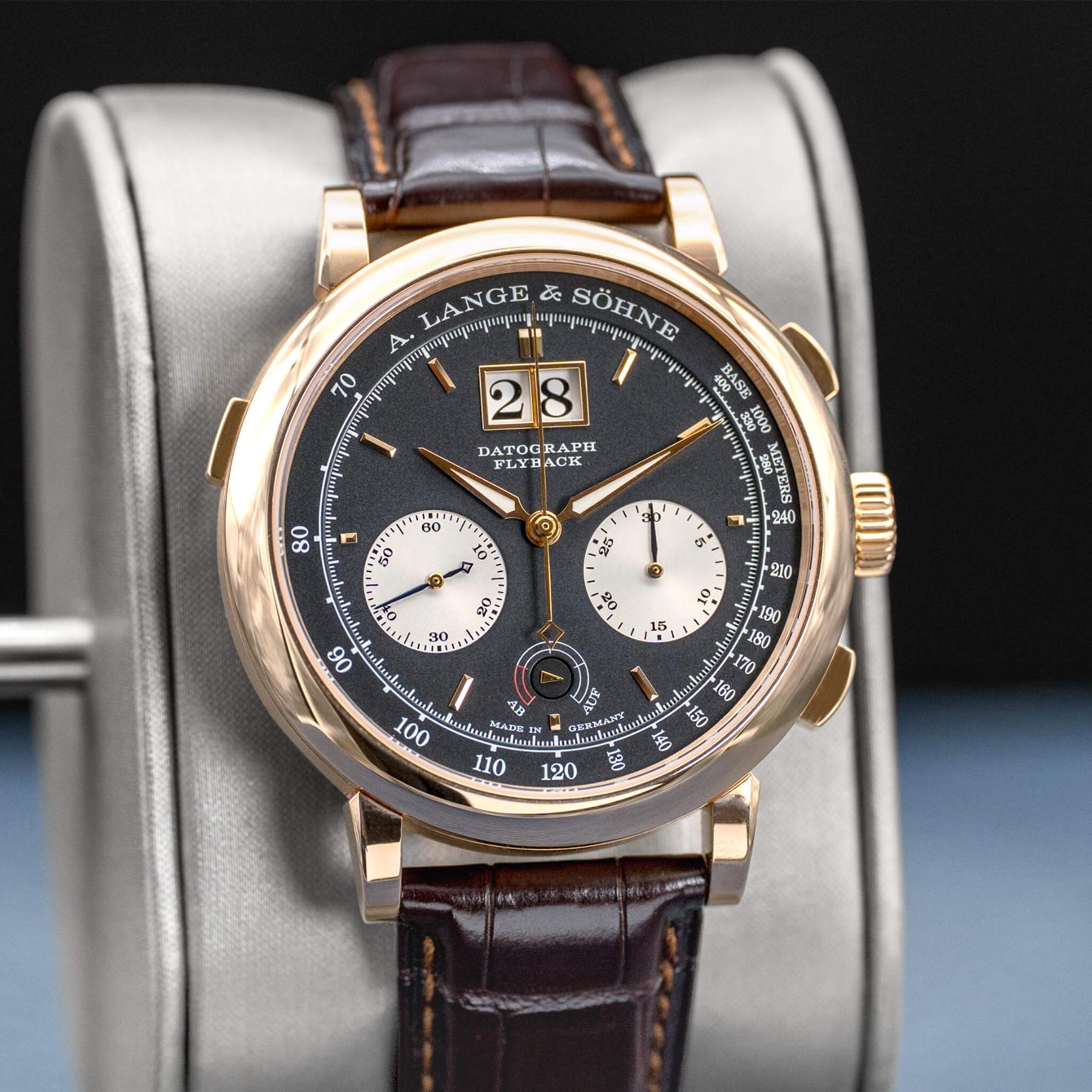 The A. Lange & Söhne Datograph 41mm (Ref. 405.031) is one of the most revered modern chronographs in high horology, defined by its beautifully balanced black dial, precisely executed big date, and one of the most celebrated in-house column-wheel chronograph movements ever made. Featuring the meticulously finished Caliber L951.6 with flyback function, it delivers exceptional mechanical craftsmanship, smooth actuation, and a three-day power reserve—all hallmarks of Lange’s renowned movement design and finishing. The 41mm case offers substantial wrist presence while retaining elegant proportions that speak to the brand’s timeless aesthetic. This example, complete with box and papers, represents an outstanding opportunity to acquire one of the most technically accomplished and collectible modern chronographs available—an enduring symbol of traditional watchmaking excellence.