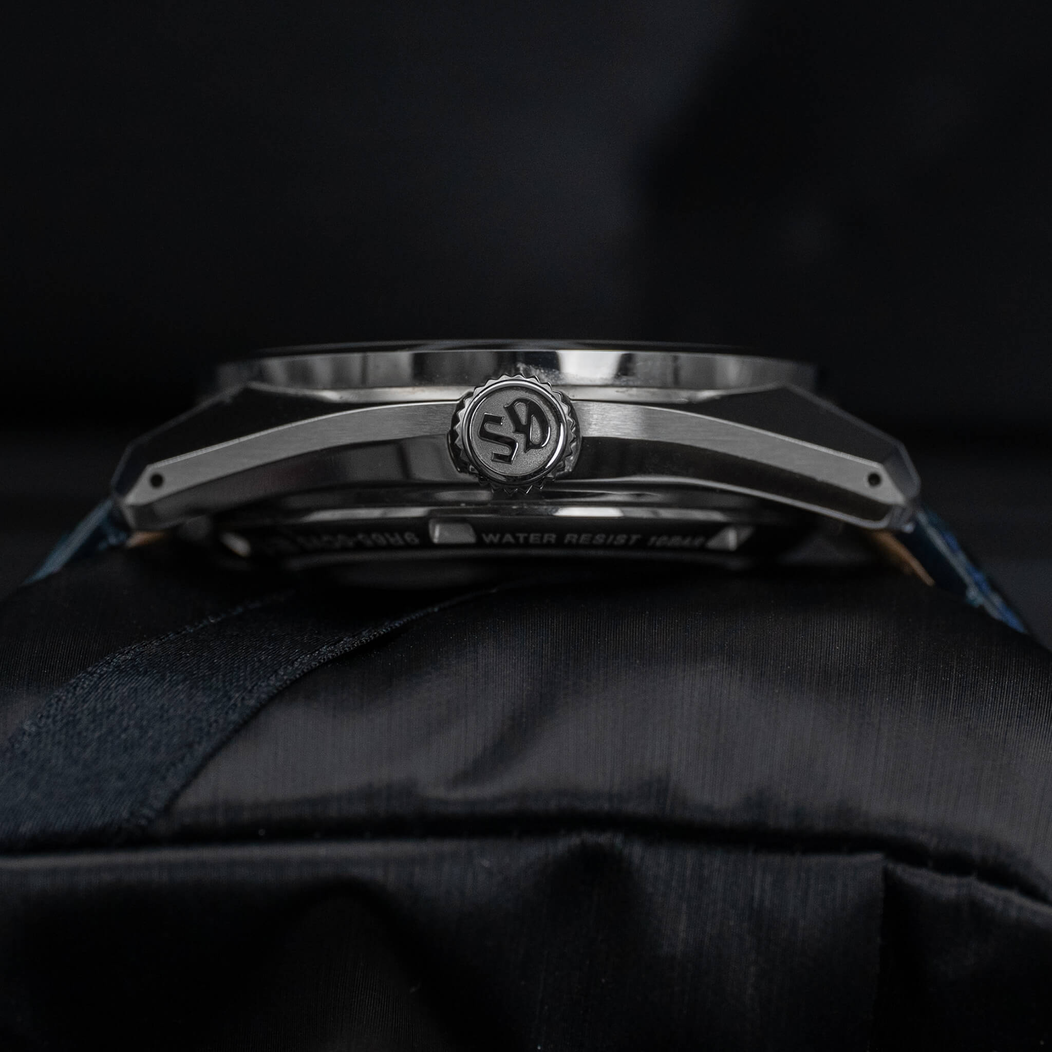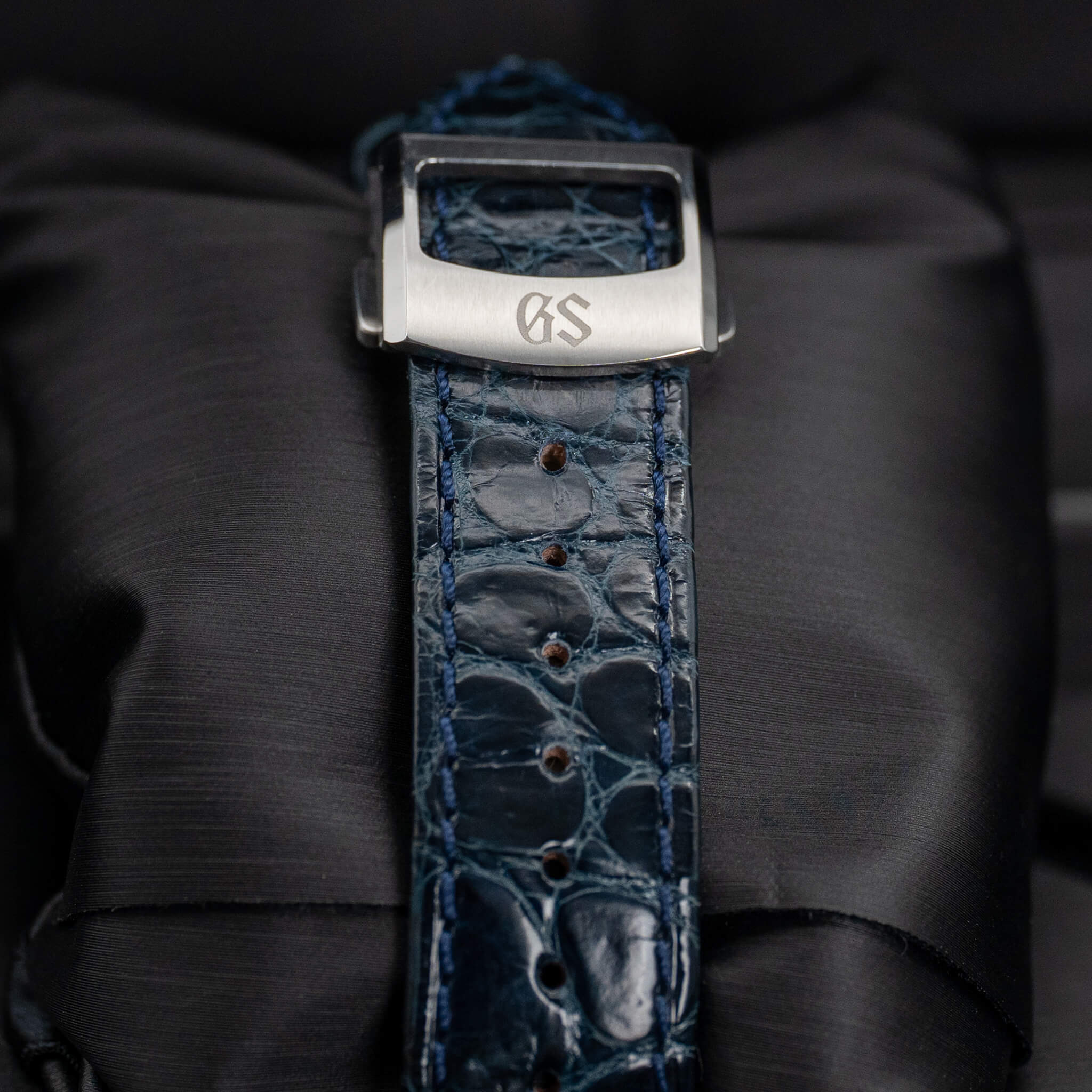 The Grand Seiko Sōkō “Frost” SBGA471 40mm is a striking special-edition Spring Drive timepiece exclusive to the U.S., featuring the frost-textured icy blue dial inspired by the bamboo forests and first autumn frosts. Its 40mm stainless steel 44GS-derived case is finished with mirror polishing via Zaratsu technique and comes fitted with both a matching steel bracelet and an optional blue crocodile strap. Powered by the Spring Drive Caliber 9R65, it delivers a glide-sweeping seconds hand, ≈72-hour power reserve, and exceptional accuracy (±1 second/day). This watch offers 100 m water resistance, making it more than suitable for daily wear. This 2022 example, complete with box and papers, is a great addition for any collector drawn to Grand Seiko’s elegant finishing and rare U.S. exclusivity.