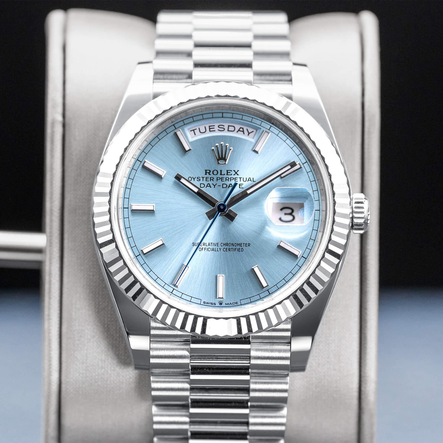 Rolex Day Date 228236 Platinum Ice Blue Dial 40mm 2025 NEW Box & Papers