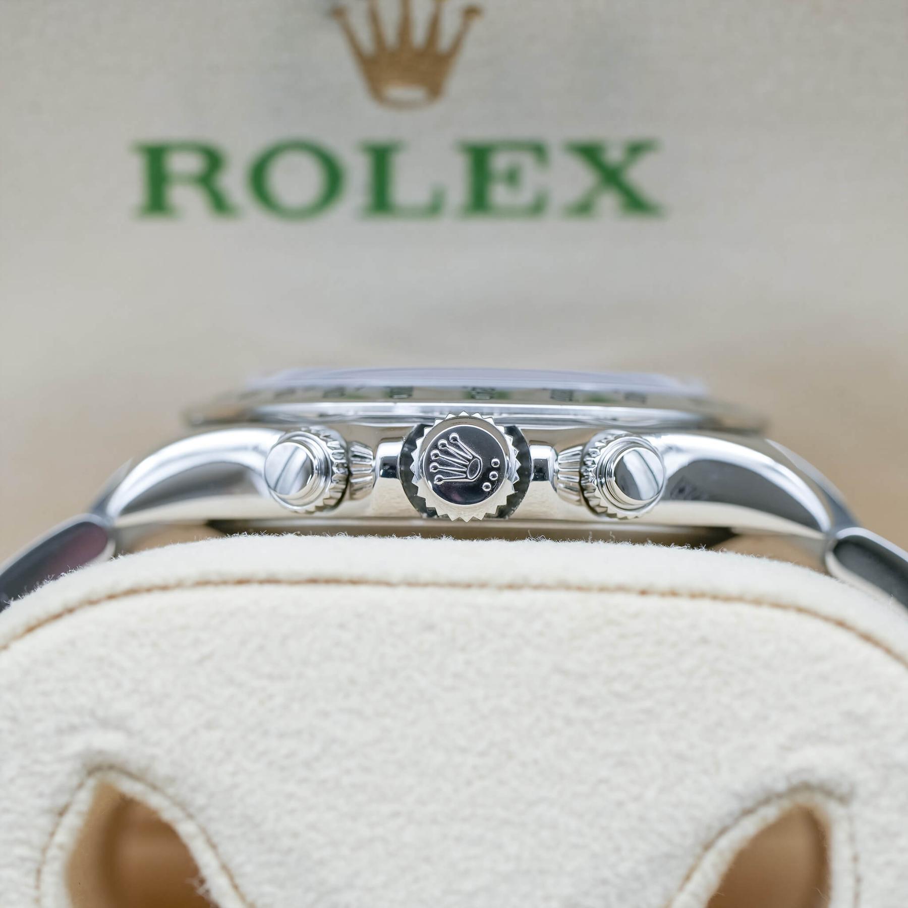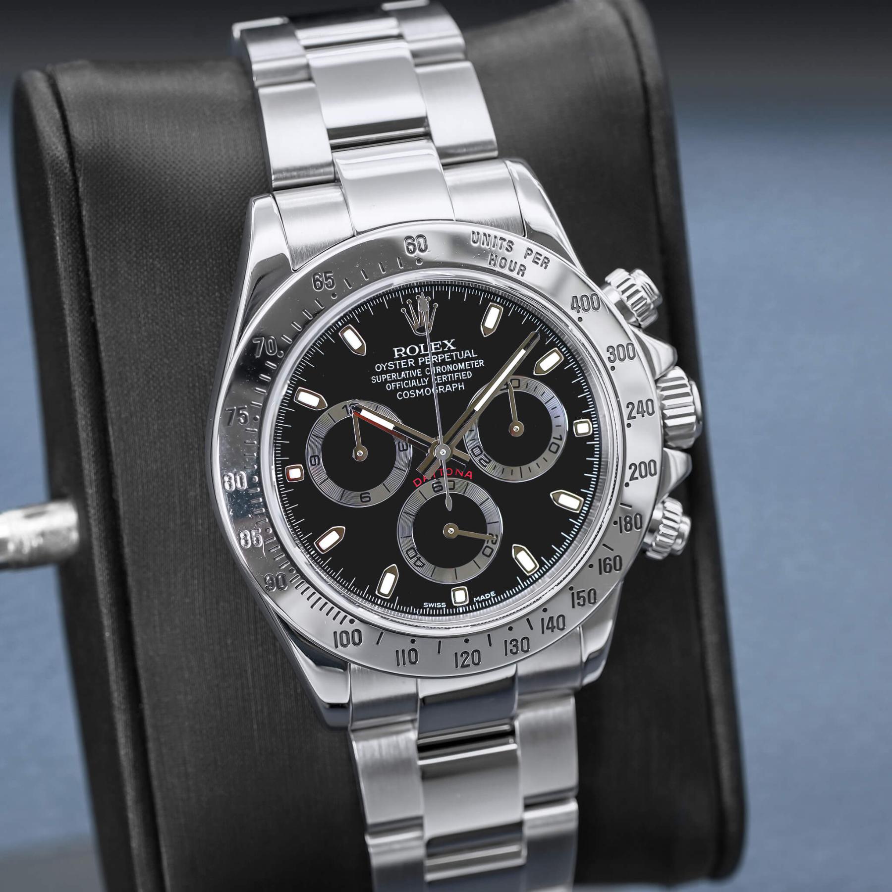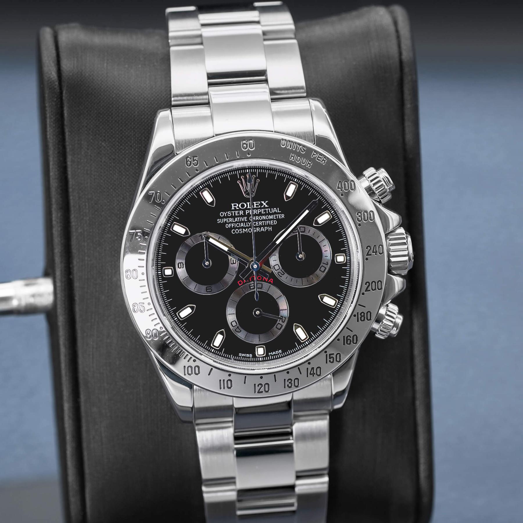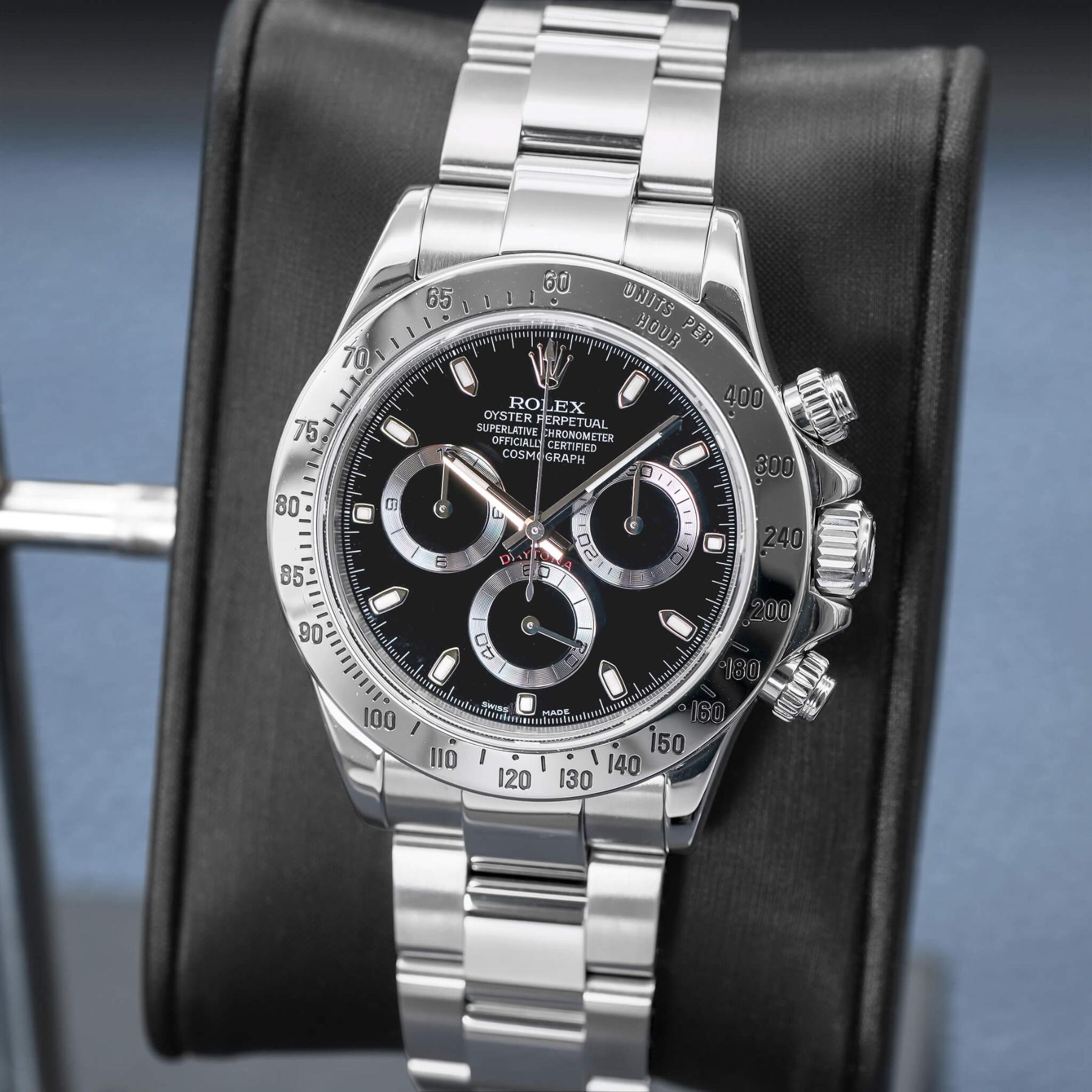 The Rolex Daytona 40mm (Ref. 116520) is one of the most important modern Daytona references, marking the era when Rolex fully transitioned the model to an in-house chronograph movement while retaining the classic steel-on-steel aesthetic collectors love. Featuring a clean black dial, polished steel bezel, and perfectly balanced proportions, the 116520 delivers a timeless, understated look that has aged exceptionally well. Powered by the legendary Caliber 4130, it offers outstanding reliability, smooth chronograph operation, and a robust architecture that helped redefine the modern Daytona. Discontinued and increasingly sought after in original, well-documented condition, the 116520 continues to be a cornerstone reference for collectors. This example, complete with its box and Rolex Certified Pre-Owned papers dated 2024, represents a compelling opportunity to own a fully authenticated, highly desirable steel Daytona with enduring appeal.