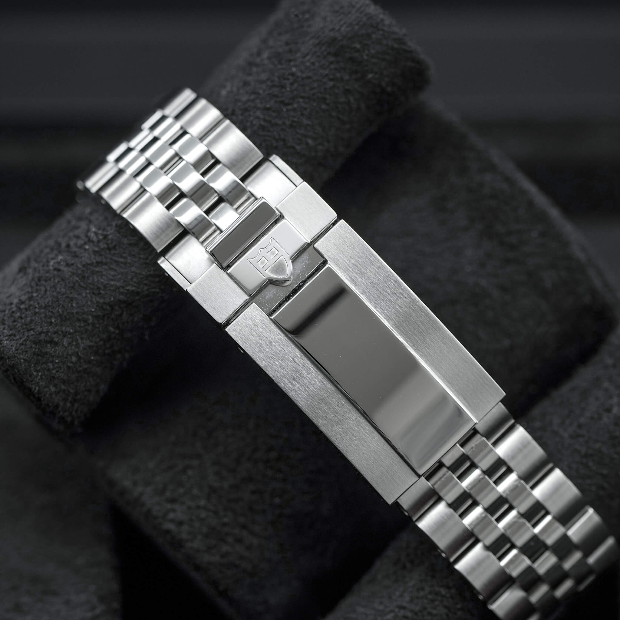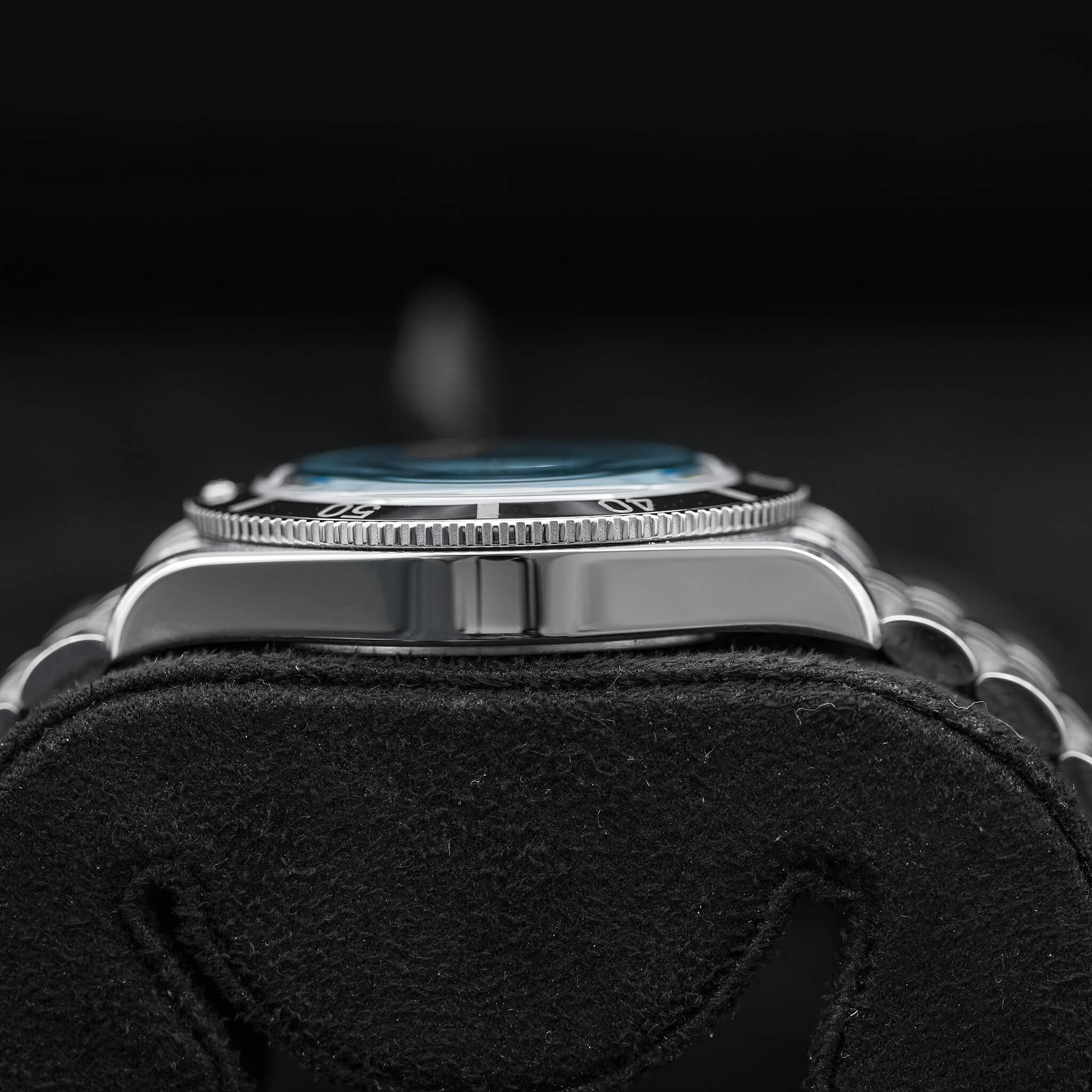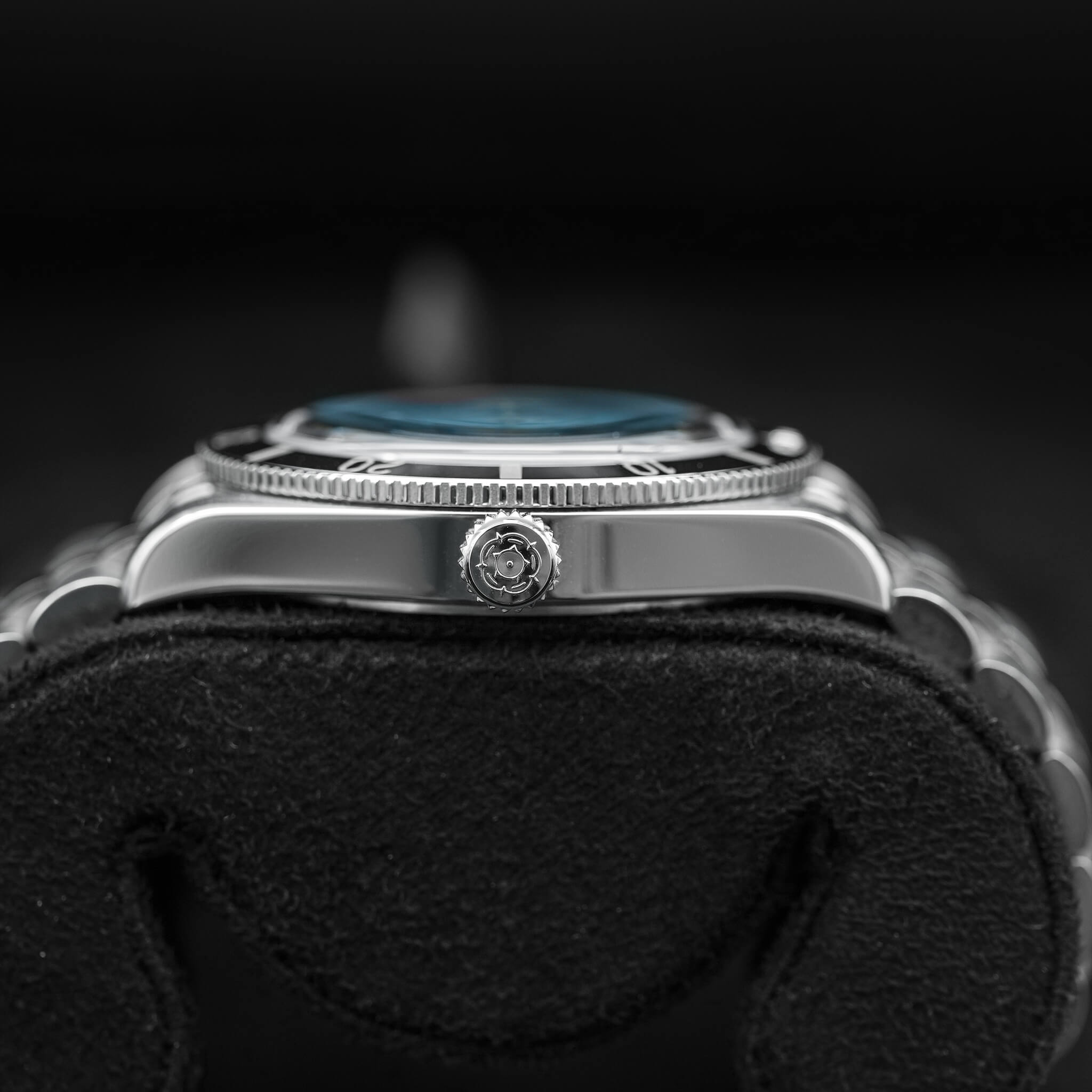 The Tudor Black Bay 54 “Lagoon Blue” 37 mm (Ref. 79000-0001) is a vibrant summer statement piece that perfectly balances vintage appeal with contemporary flair. Its “Lagoon Blue” sand-textured dial and polished-steel bezel evoke sunlit shores and ocean waves, while habitable proportions—just 37 mm in diameter and 11.2 mm thick—ensure a timeless and wearable profile. Powered by the COSC-certified Manufacture Calibre MT5400, it delivers a powerful 70-hour power reserve, robust 200 m water resistance, and Tudor’s user-friendly T-fit micro-adjust clasp on a five-link bracelet. This new 2025 model, complete with box and papers, captures Tudor’s playful spirit and modern dive watch innovation.