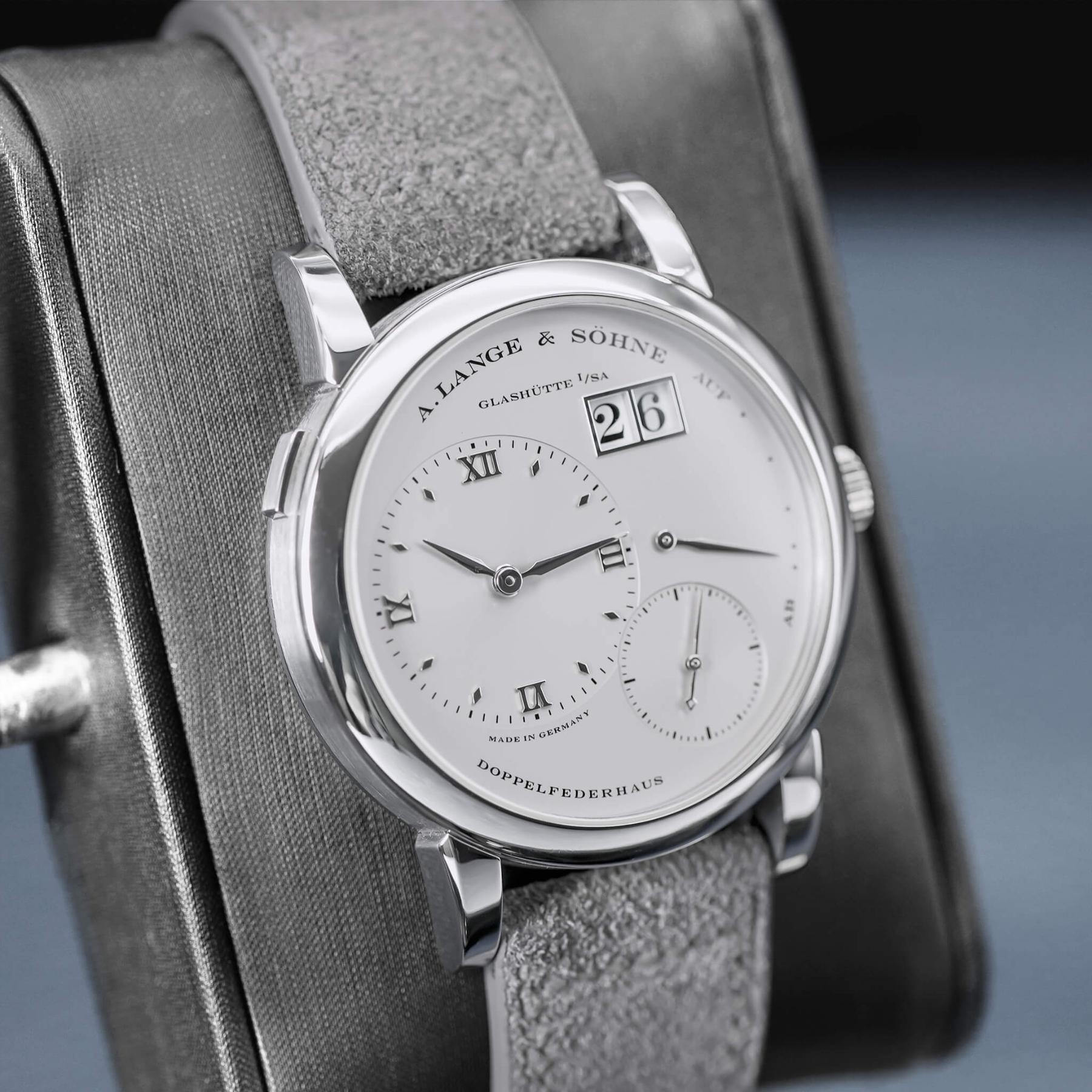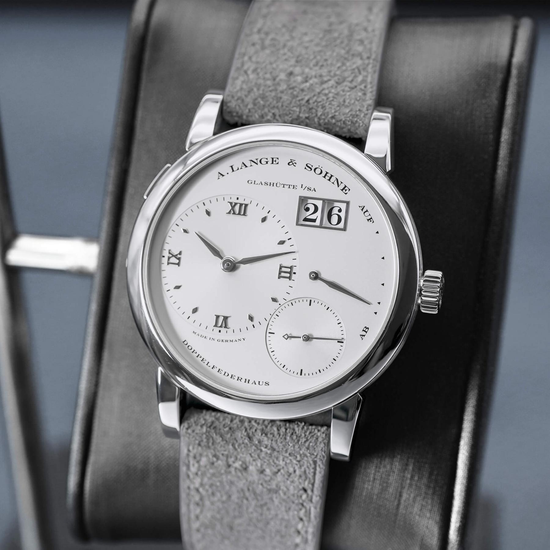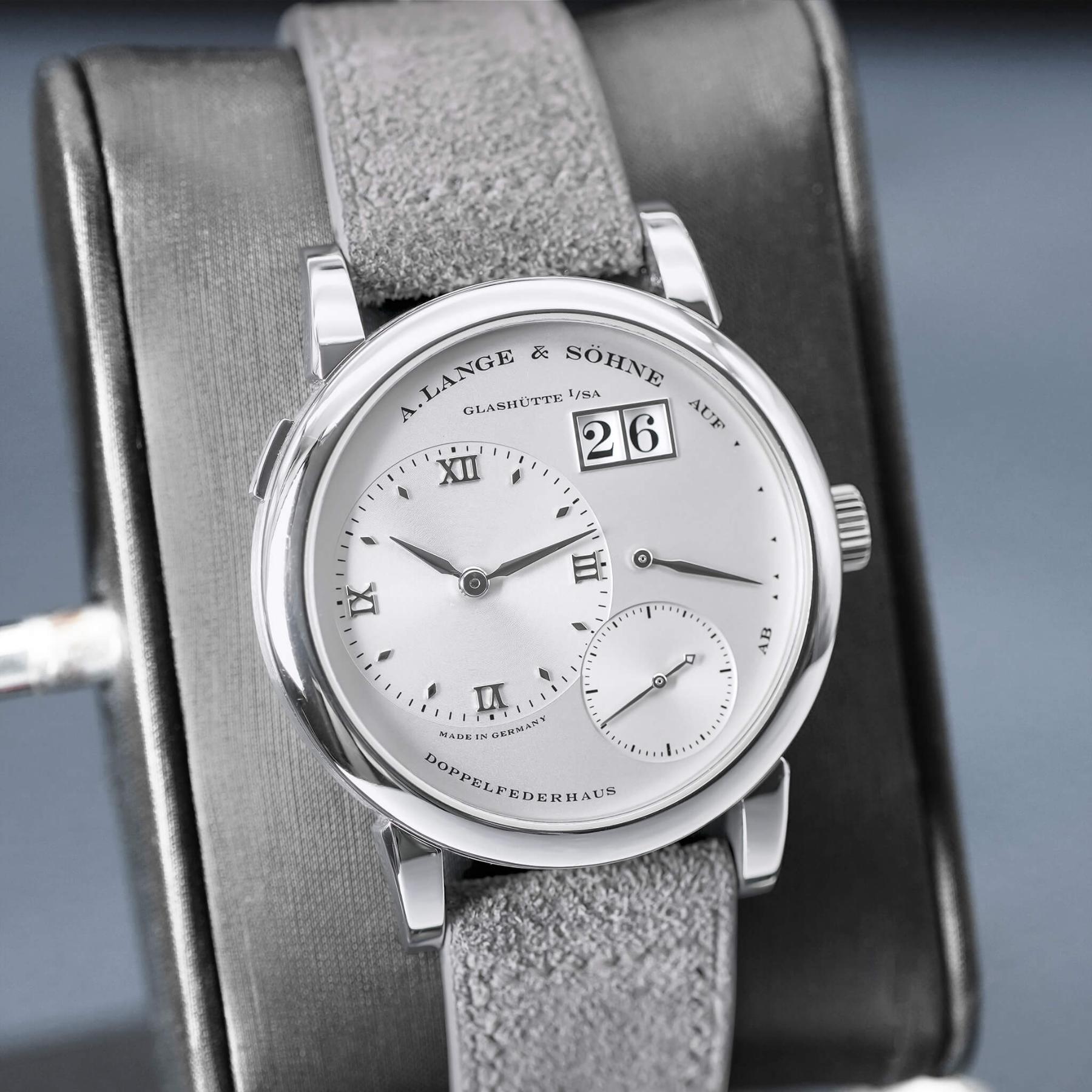 The A. Lange & Söhne Lange 1 38.5mm (Ref. 101.025) is one of the most iconic expressions of modern German watchmaking, defined by its asymmetric dial layout, outsized date, and unmistakable design language that has come to symbolize the brand itself. Crafted in platinum, this reference carries a level of understated weight and refinement that perfectly complements the cool-toned dial and razor-sharp finishing Lange is known for. Powered by the hand-finished Caliber L901.0 manual-wind movement, it showcases exceptional craftsmanship, depth, and mechanical beauty through the sapphire caseback. The Lange 1 remains a cornerstone of serious collections, prized for its originality, balance, and timeless appeal. This example, complete with box and papers, represents a rare opportunity to acquire one of the most important high-horology designs of the modern era in its most prestigious metal.
