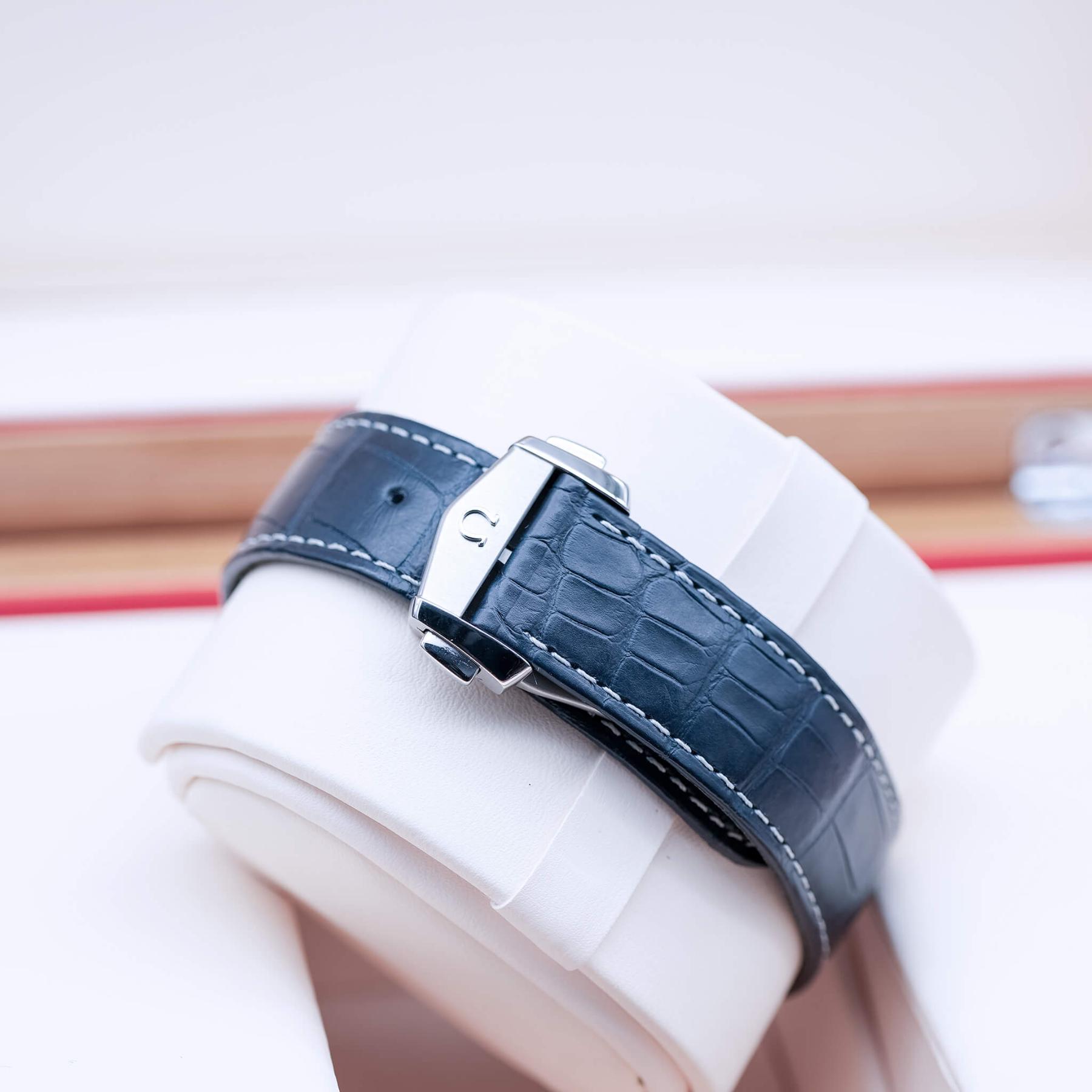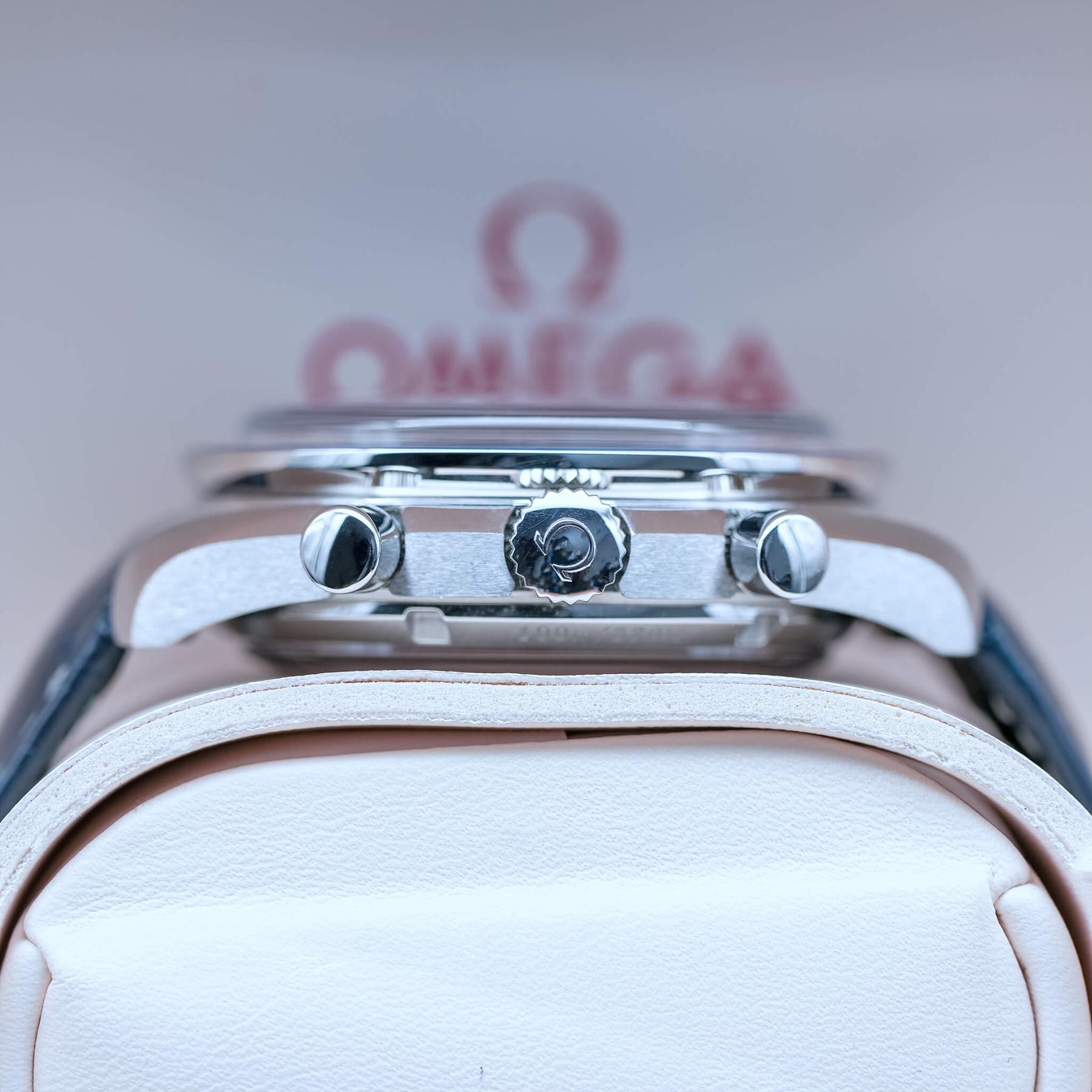 The Omega Speedmaster Moonphase 44mm offers a sophisticated and technically rich take on the iconic Speedmaster design, combining classic chronograph heritage with an elegant astronomical complication. Featuring a striking blue dial with sunburst finishing, polished subdials, and a beautifully detailed moonphase display, this reference delivers strong visual depth while remaining unmistakably Speedmaster at heart. Powered by Omega’s in-house Co-Axial Master Chronometer movement, it provides exceptional accuracy, magnetic resistance, and a robust power reserve, all visible through the sapphire caseback. The larger 44mm case gives the watch real presence on the wrist while maintaining excellent balance and wearability. This 2024 example, complete with box and papers, is an outstanding opportunity to add a modern, complication-driven Speedmaster that blends technical excellence with refined everyday luxury.