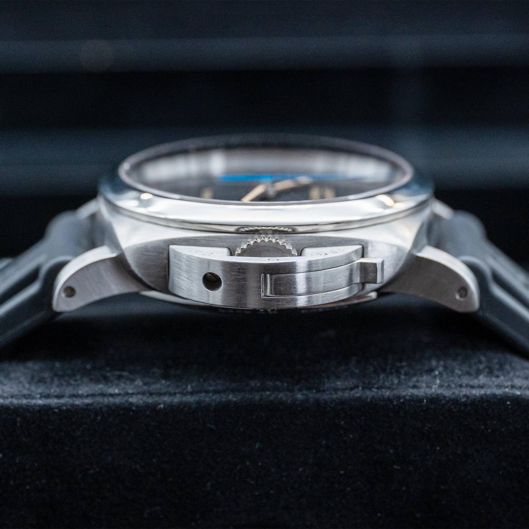 The Panerai Luminor 1950 3 Days Chrono Flyback 44mm (Ref. PAM00524) is one of Panerai’s most technically impressive chronograph references, combining the brand’s iconic 1950 cushion case with a robust and highly functional flyback chronograph complication. Featuring a clean, legible dial layout with bold luminous markers and Panerai’s signature crown guard, it delivers unmistakable wrist presence while remaining purpose-built and intuitive to use. Powered by the in-house P.9100 automatic movement, it offers a three-day power reserve and flyback functionality that allows the chronograph to be reset and restarted instantly with a single push—an advanced feature appreciated by enthusiasts. This 2015 example, complete with box and papers, is an excellent opportunity to add a technically sophisticated and visually striking Panerai chronograph with strong collector appeal.