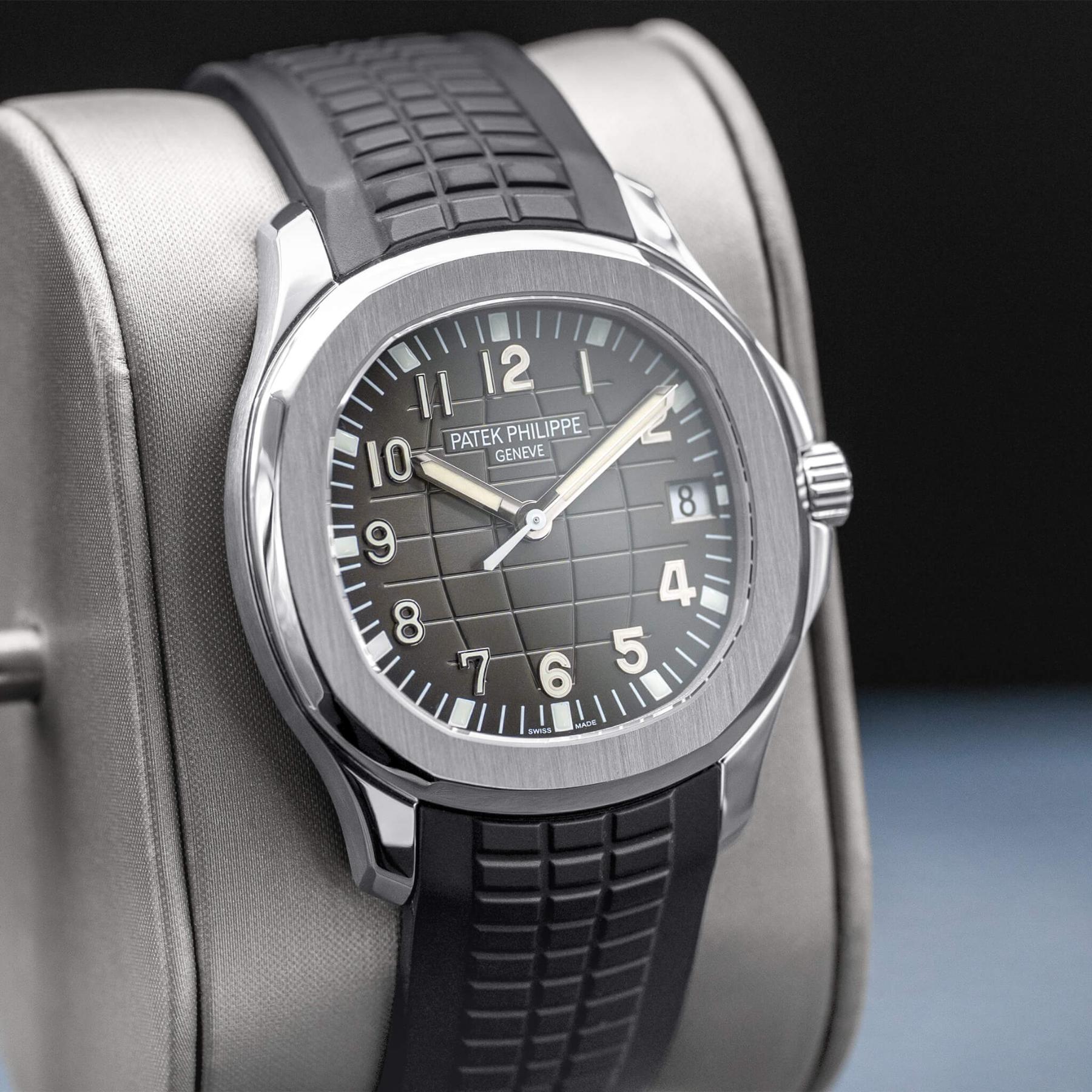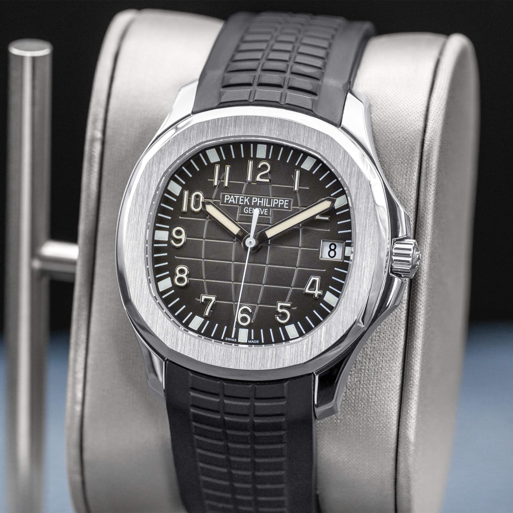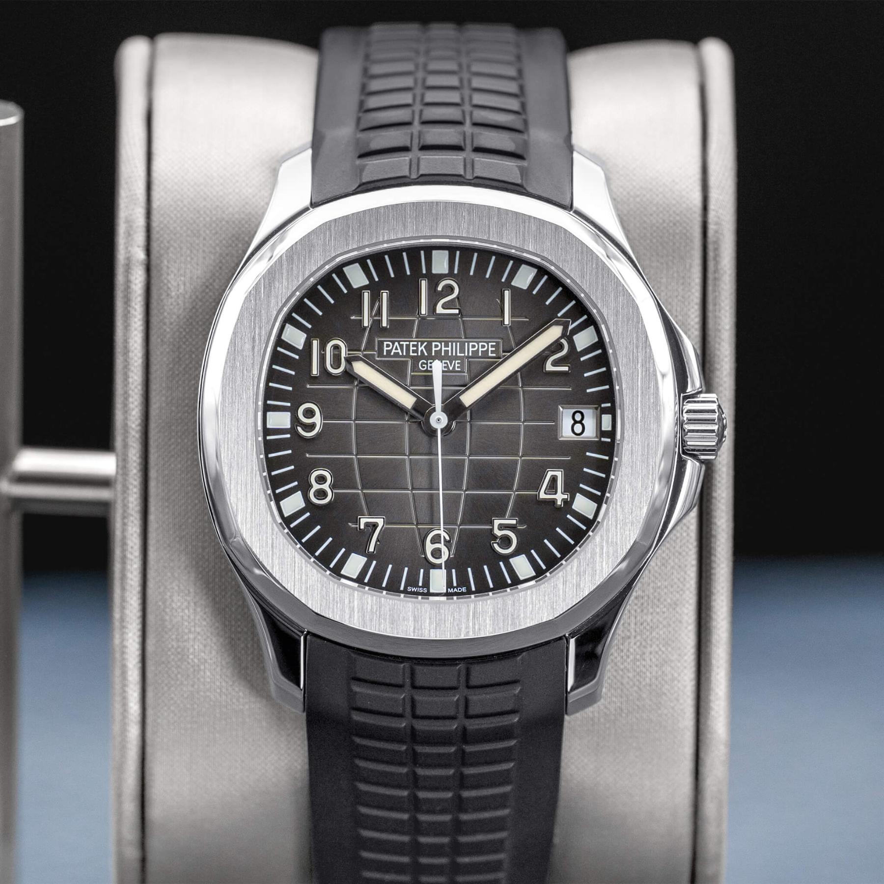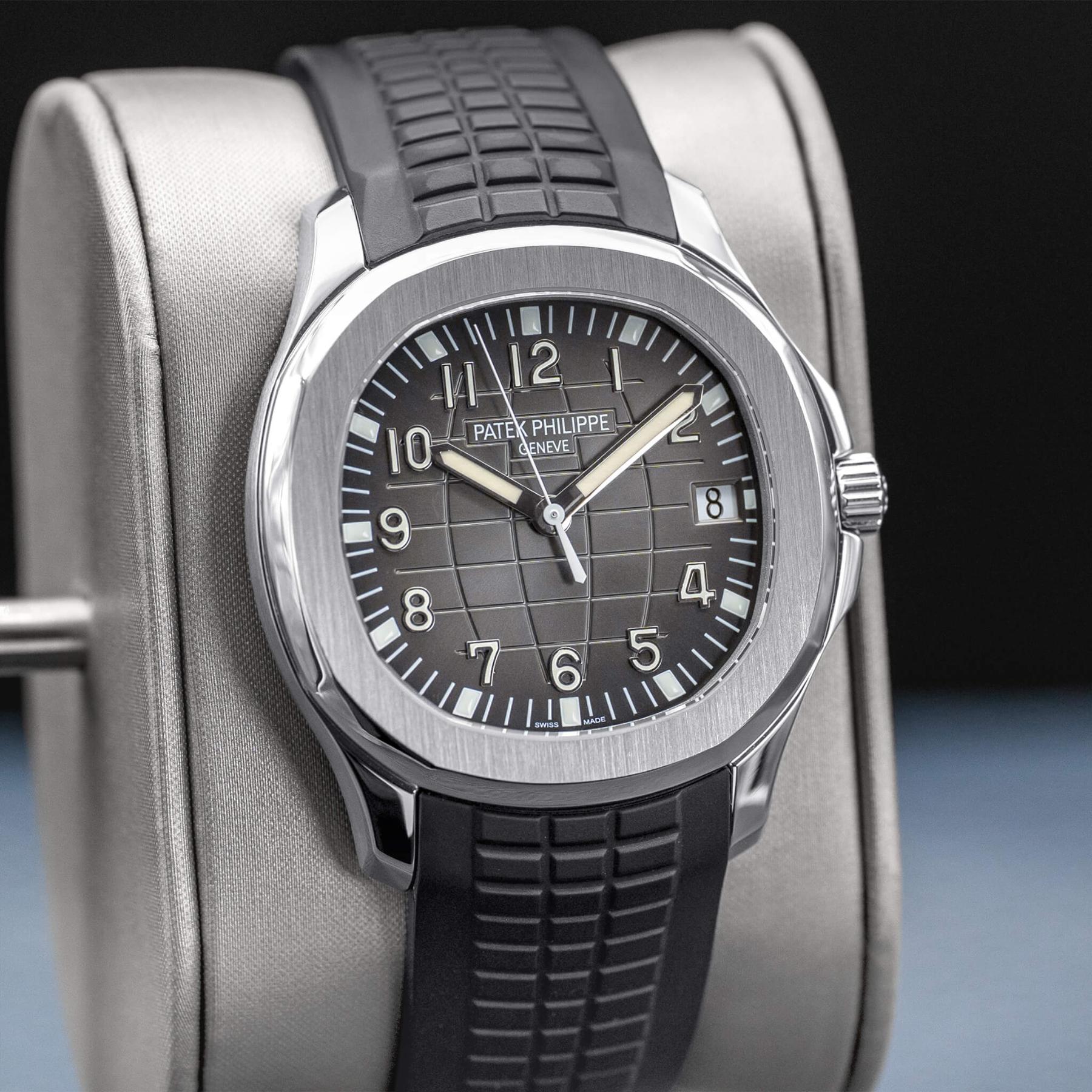 The Patek Philippe Aquanaut 40mm (Ref. 5167A) is one of the most celebrated modern sport watches, characterized by its distinctive black embossed dial, rounded octagonal case, and integrated tropical rubber strap that delivers both sophistication and everyday versatility. Powered by the in-house Caliber 324 S C, it offers excellent accuracy, robust performance, and refined finishing visible through its thoughtfully designed dial and case. The 40mm size strikes a perfect balance between presence and wearability, making it a favorite among collectors seeking a luxury sports watch that transitions effortlessly from casual to formal settings. This 2022 example, complete with box and papers, is an exceptional opportunity to add one of Patek Philippe’s most sought-after steel references to the collection—an enduring icon with strong long-term desirability.