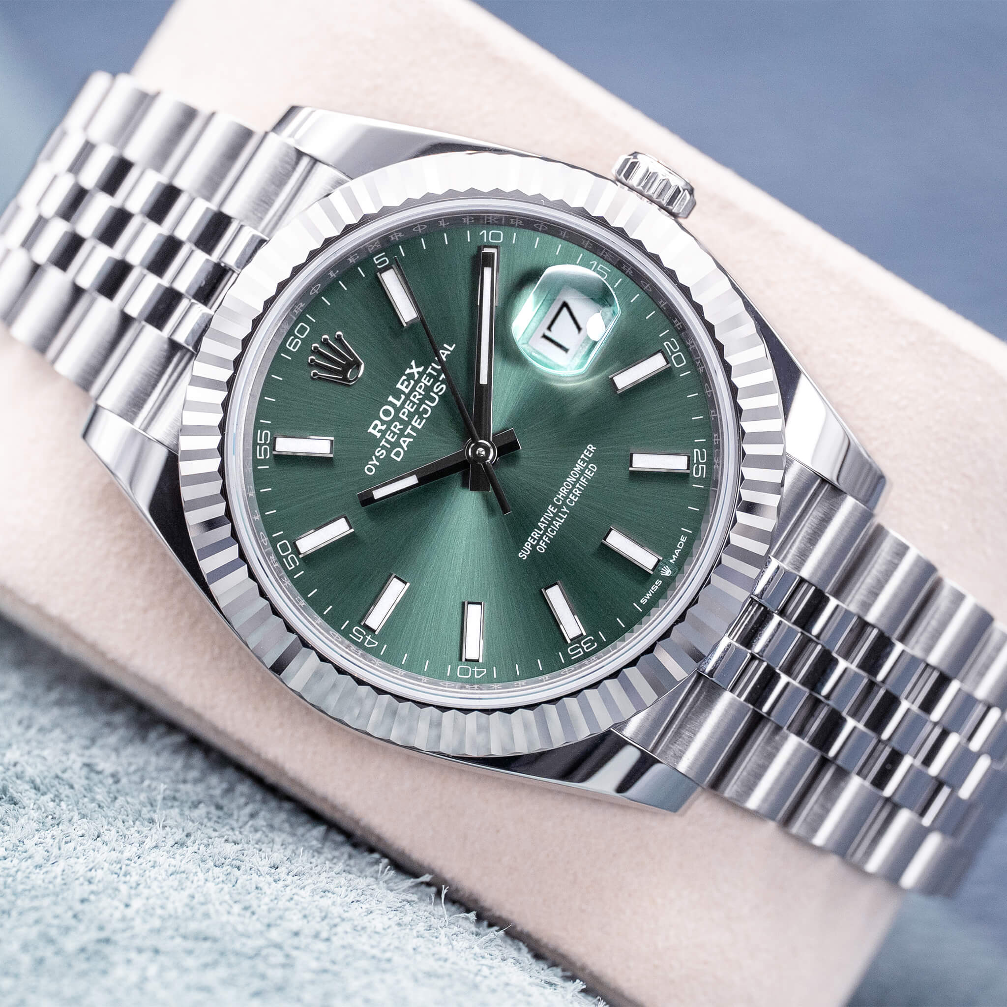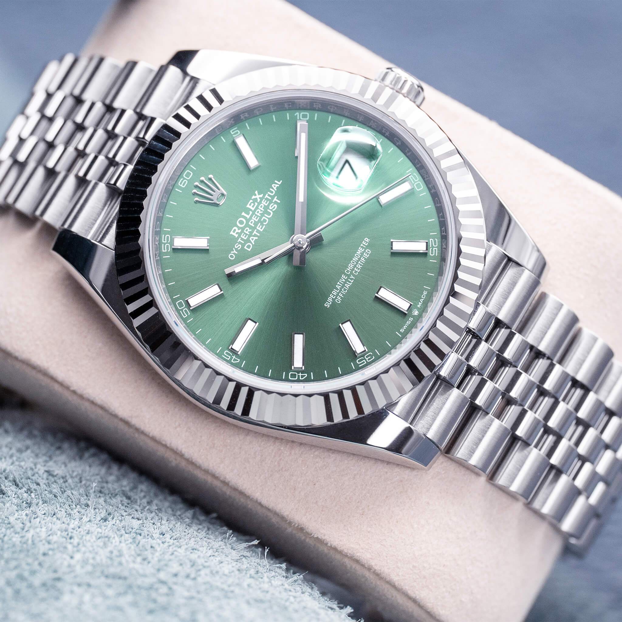 Rolex Datejust 126334 Mint Green Dial Fluted Jubilee 41mm 2025 NEW Box & Papers