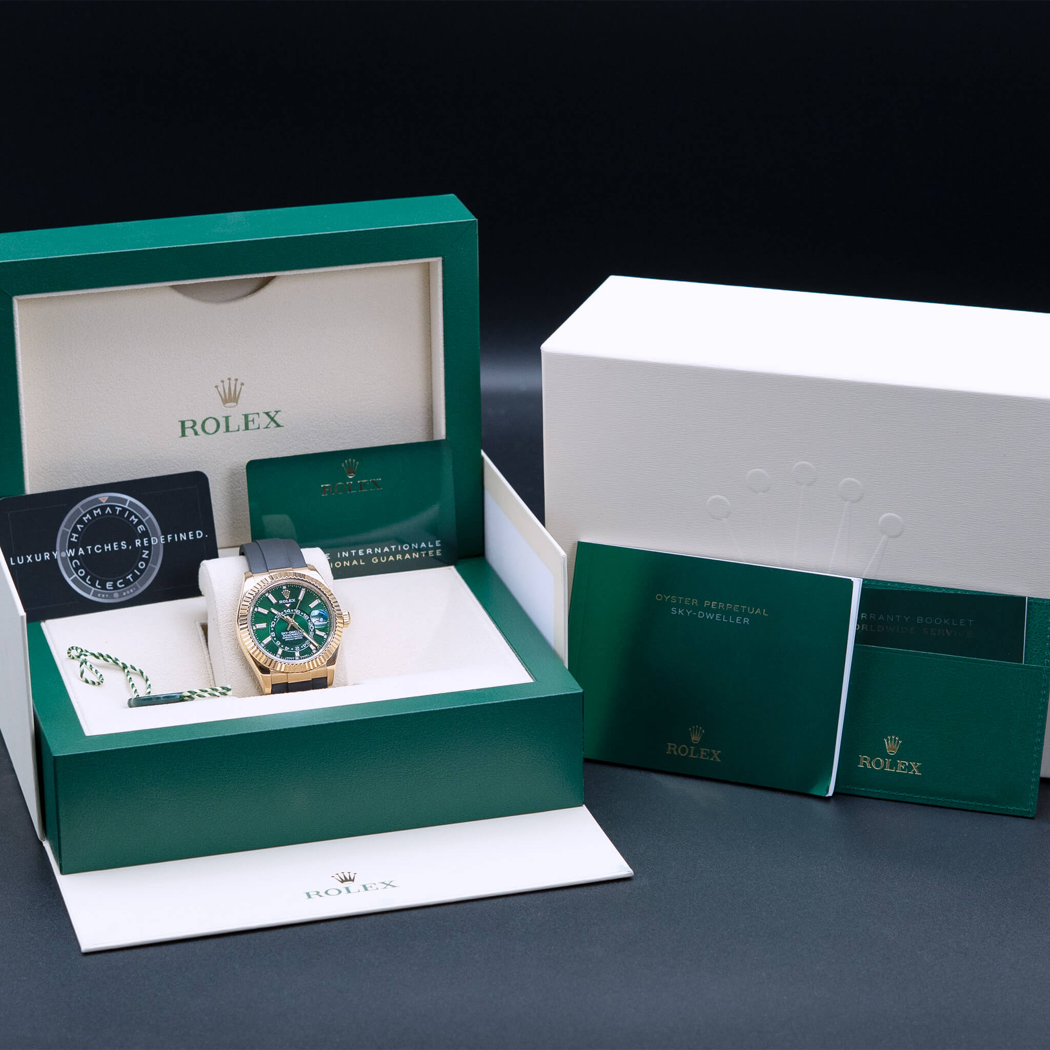 Rolex Sky Dweller 336238 Yellow Gold Green Dial 42mm 2025 Box & Papers